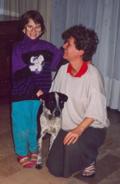 Az előző kutyámról már meséltem (itt). Tapsi kóbor kutya volt találkozásunk előtti életében, én fedeztem fel őt egy kocsi alatt. Házőrzőnek kiválóan alkalmasnak bizonyult, ha valaki olyan bátor volt, hogy a mi jelenlétünk nélkül jött be a társasház kertjébe, vígjátékba illő jeleneteknek lehetett részese! Egyszer a szomszéd udvarlója döntött úgy, hogy meglátogatja a barátnőjét (lehetőleg titokban). Tapsi nem igazán kedvelte az engedélyünk, azaz kíséretünk nélkül érkezőket: a fiút felkergette a villanyoszlopra, aki – amíg haza nem értünk –, 3 órán keresztül ott lógott (az „udvarlóbiztos” kutyának persze csak a lányos apák örültek). Tapsi a pózna aljánál elégedetten ült és lelkesen őrizte a hívatlan vendéget, aki ha megmozdult, hangos ugatásba kezdett. (Engem Tapsi nagyon szeretett, tőlem bármit megtűrt, minden kreatív ötletemet tolerálta, például a kedvenc játékom a hátán való lovagolás volt.) Pár kellemetlen helyzet után (az már nem volt annyira mulatságos, hogy édesapám főnökének a vadonatúj aktatáskájával kellett védekeznie), elvittük Tapsit kutyapszichológushoz. A szakember azt mondta, hogy mielőtt hozzánk került, valószínűleg verték, ezért az maradt meg benne, hogy akkor jár a legjobban, ha előre támad. Mi is észrevettük, hogy élete végéig rettegett a hosszú tárgyaktól (pl. seprű, vasrúd). Azt a tanácsot kaptuk, hogy egy szombati napon, a legnagyobb tömegben szájkosárral vigyük el Tapsit a Váci utcába sétálni. Először őrjöngött, mindenkit megugatott, végül megnyugodott. Még egy hétvégén emlékezetessé tettük a turisták budapesti látogatását, de attól kezdve sose többet harapott meg senkit, ha vele tartózkodtunk. Rájött arra, ha mi ott vagyunk, az idegenekkel szemben is biztonságban érezheti magát, nem kell előre védekeznie.