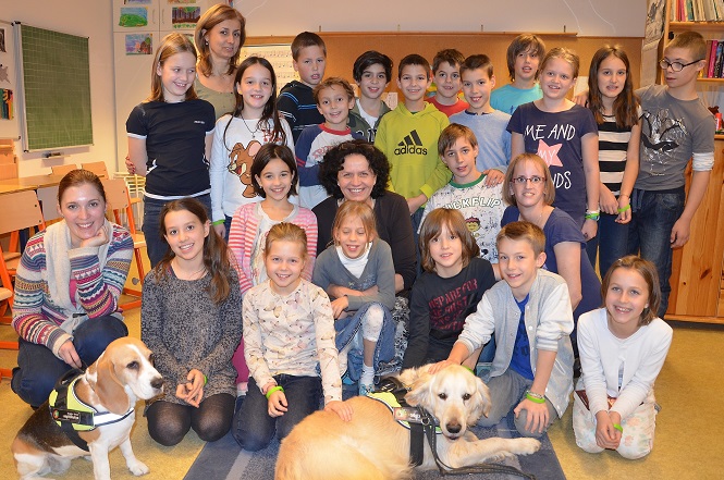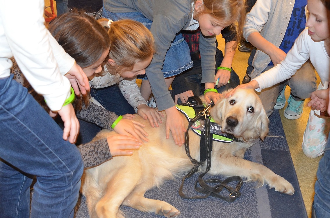 Hosszas felkészülés után megszületett a munkánk gyümölcse! Kuku – Nyafival együtt – levizsgázott a Gyermekek Házában. Így nem csak a hangjelző, hanem a terápiás kutya szakirányt is elvégezte. Köszönettel tartozom Kókayné Lányi Mariettának, a Gyermekek Háza igazgatónőjének és Mányik Richárdnak, a kiképzőnknek, és nem utolsósorban a negyedikes gyerekeknek. A legszebb gratulációt az egyik kisdiáktól, Csengétől kaptam. Még aznap este írt egy emailt.