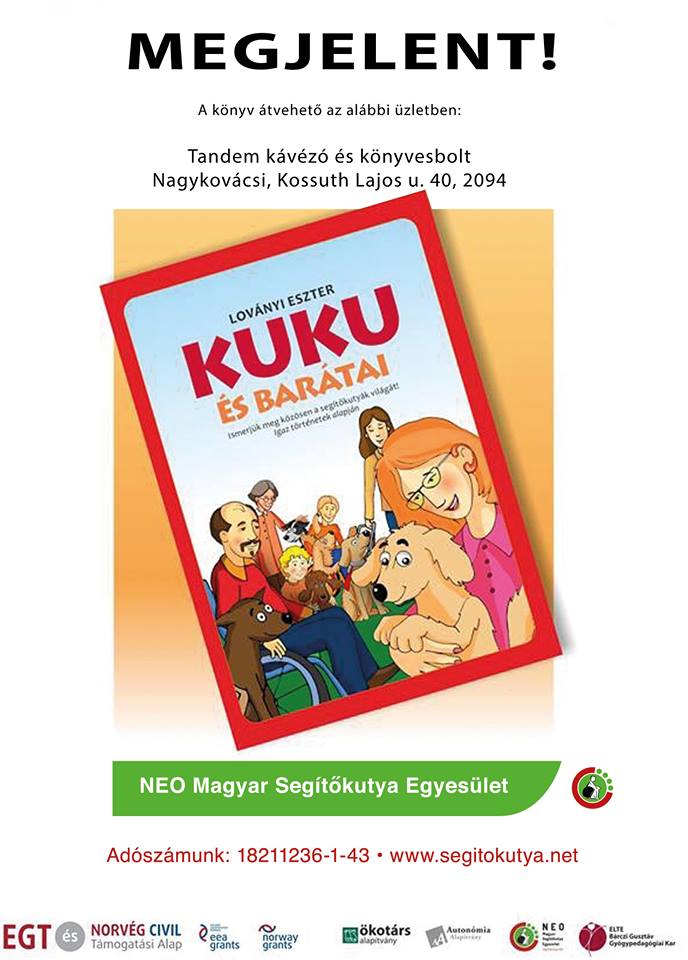 A Tandem kávézóban és könyvesboltban átvehető “Kuku és barátai – Ismerjük meg közösen a segítőkutyák világát!” című mesekönyv. Megéri ellátogatni a jó hangulatú, különleges helyre, ahol mindig kedvesen fogadják az érdeklődőket!
