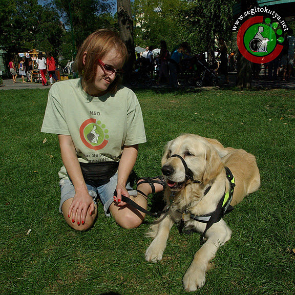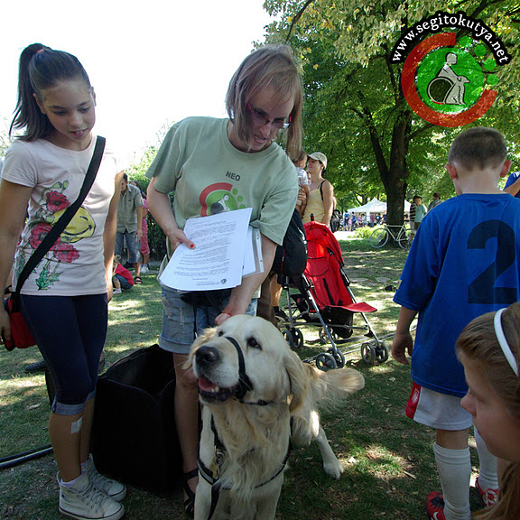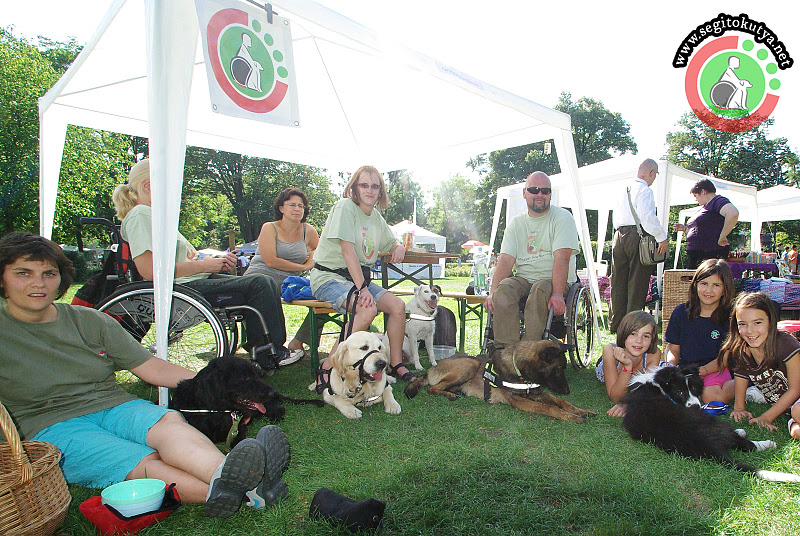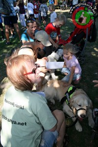 Hat órát töltöttünk el a standunknál és annak környékén, a legmelegebb nyári (pontosabban őszi) napsütésben. A hallókutya-feladatokra már egyáltalán nem is helyeztünk hangsúlyt, hanem inkább Kuku gyenge pontjára. Vagyis azt gyakoroltuk, hogy akkor se örülünk meg folyton mindenkinek, ha húzzák előttünk a mézesmadzagot (értsd: „Juj-jaj, de édes, szép blöki vagy te!”).